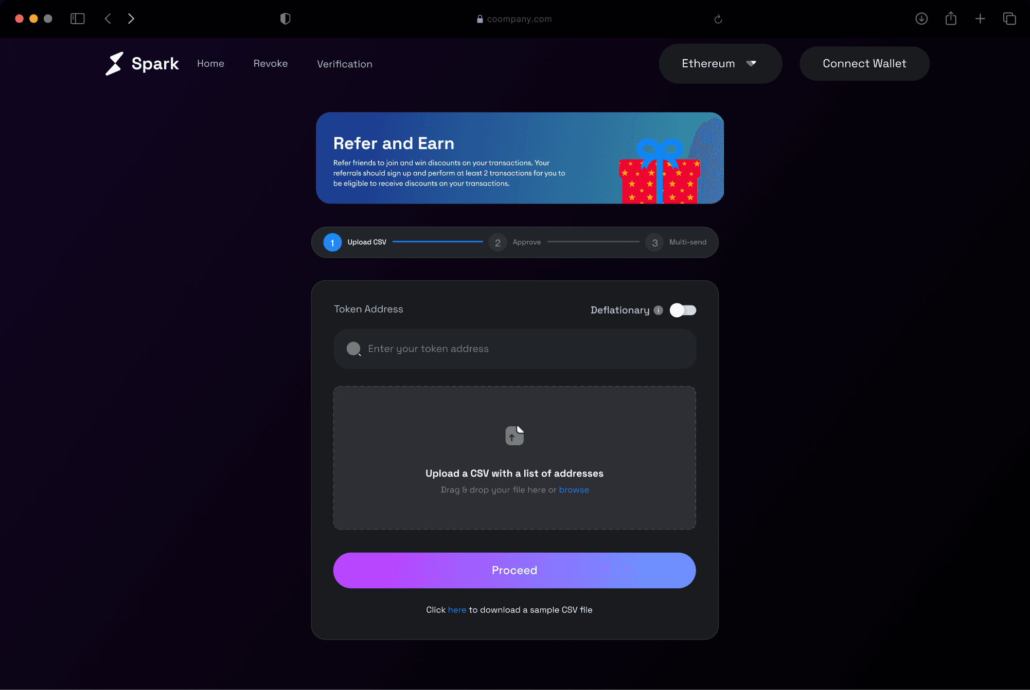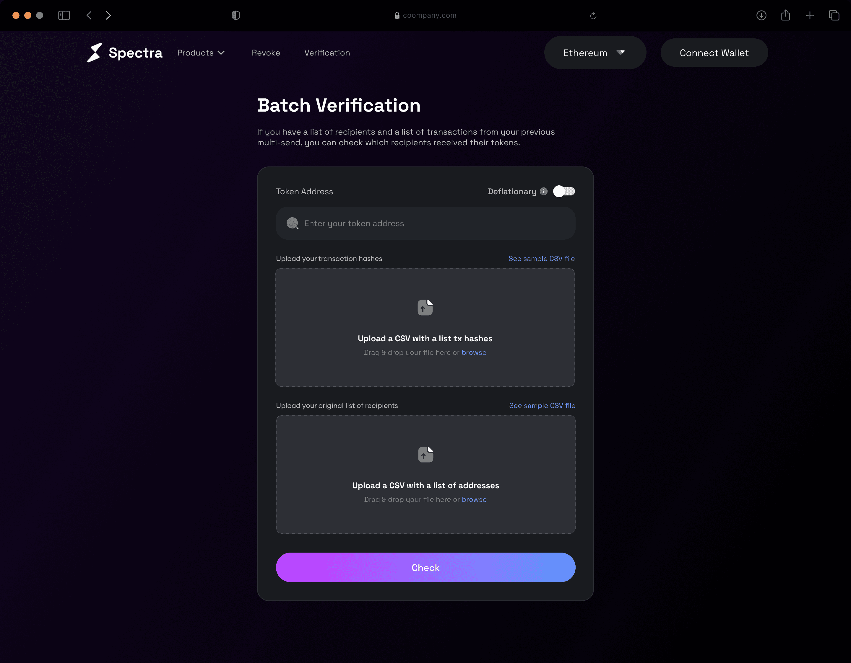 One of the major pain points identified during our research was the stress associated with manually confirming who received tokens. To address this, we implemented a feature that automates this verification process. Users simply upload a CSV file containing transaction hashes along with the original list of wallet addresses, and our application takes care of the rest. This ensures accuracy, saves time, and eliminates the manual hassle, providing a seamless experience for token distribution management.